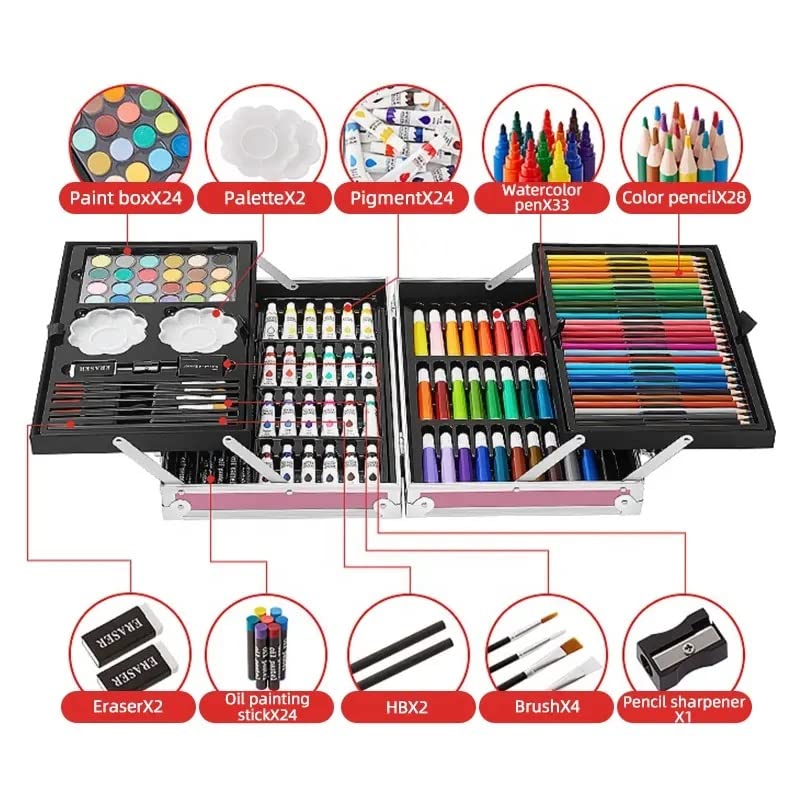 This deluxe 145pc Aluminium Box art set includes all types of coloring and drawing materials for artists of all ages – especially for children and beginners.