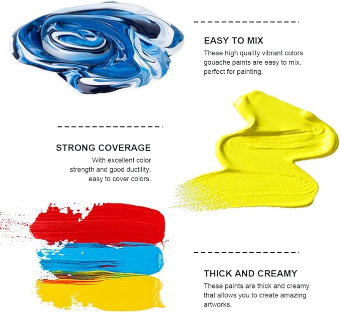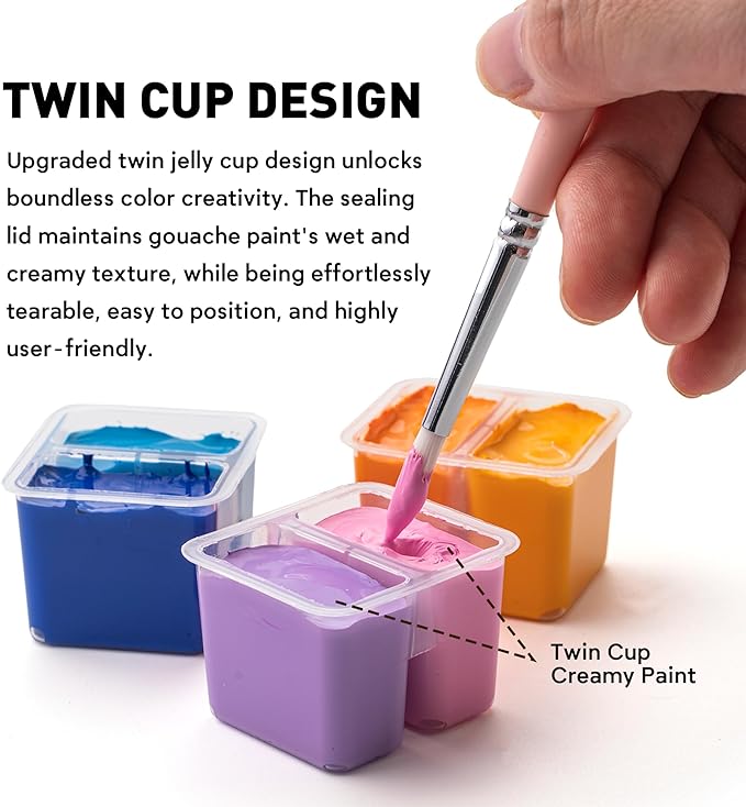 • NEW DESIGN The upgraded unique jelly cup design with an excellent sealing lid keeps our gouache paints wet and creamy for better artistic paintings. The size of a portable jelly cup is perfect for outdoor painting.