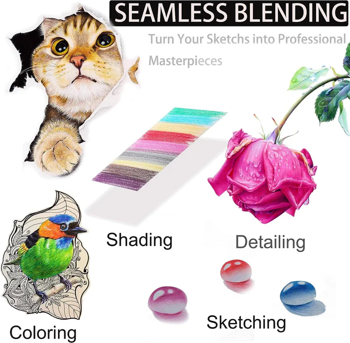 - RICH PIGMENTS: The silky smooth,velvety soft core lay down vivid color.colored core are rich pigments, Perfect for coloring & drawing etc. break-resistant cores produce incredible tone, perfect for blending and layering multiple colors.