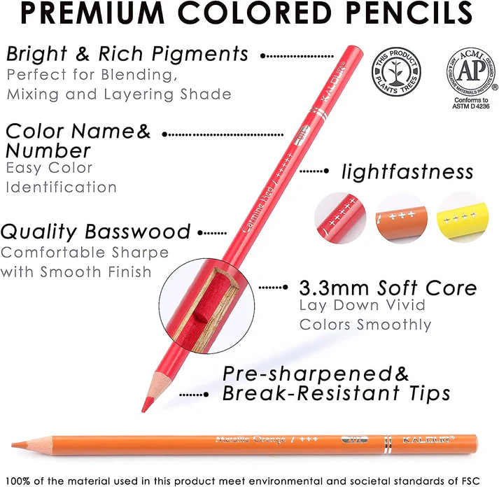 - Numbered&Named : Each pencil body has a unique number and color name for easy color identification.color pencil is made of high-quality basswood, which is very easy to sharpen. Conforms to U.S. ASTM D-4236 & EN71-3.non-toxic safe.