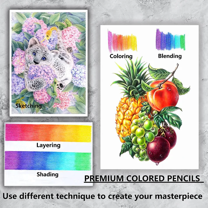- Vivid,Vibrant Color : Each pencil inside is equipped with high quality cores.The silky smooth,velvety soft pencil leads lay down lots of vivid color,the colored core are highly pigmented, Perfect for coloring & drawing etc.Soft break-resistant cores produce incredible tone, perfect for blending and layering multiple colors.